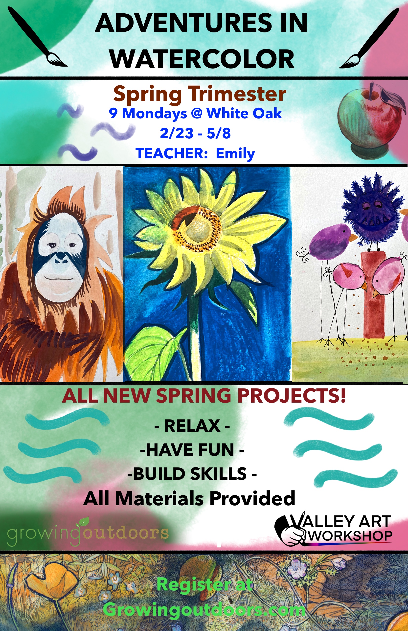 Adventures in Watercolor! – 2:15pm – 3:15pm – Click here to view flier![]()